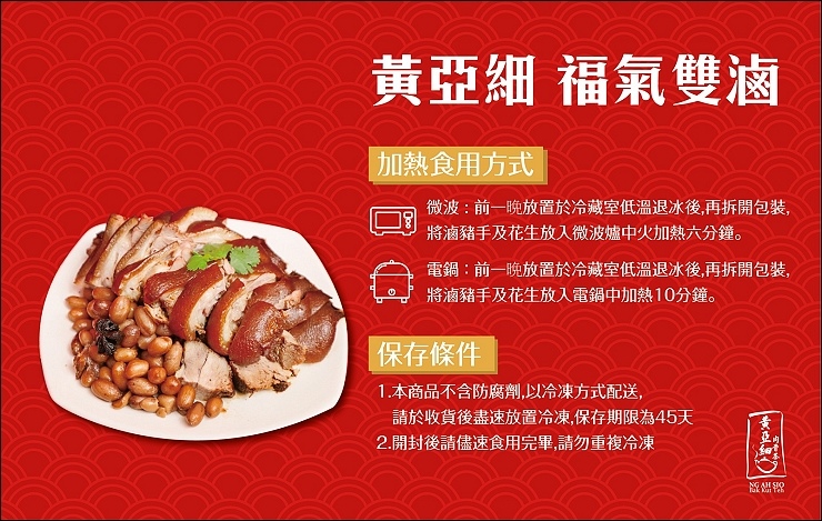 微波:前一晚放置於冷藏室低溫退冰後,再拆開包裝,將滷豬手及花生放入微波爐中火加熱六分鐘。
