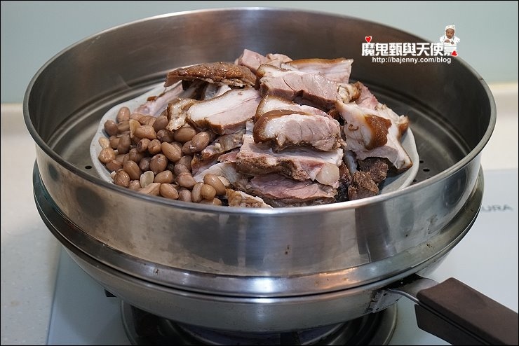 因為家中沒有微波爐,我們採用蒸籠加熱的方式,蒸籠水滾之後,用中火蒸十分鐘,記得前一晚就要先在冷藏退冰一晚喔!!