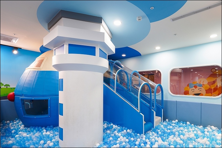 飯店也有適合小朋友玩樂的設施,像是Pit In休閒室、Flight Deck遊戲室、戶外遊戲區等,提供親子圖書、親子節目與新鮮可口的爆米花,讓父母可以放心在櫃檯處Check in。 Flight Deck 遊戲室/航空機場的設計,彷彿置身於真的機場中,藍天、塔台、跑道、大飛機等設施,讓小朋友能夠在裏頭盡情的玩樂。
