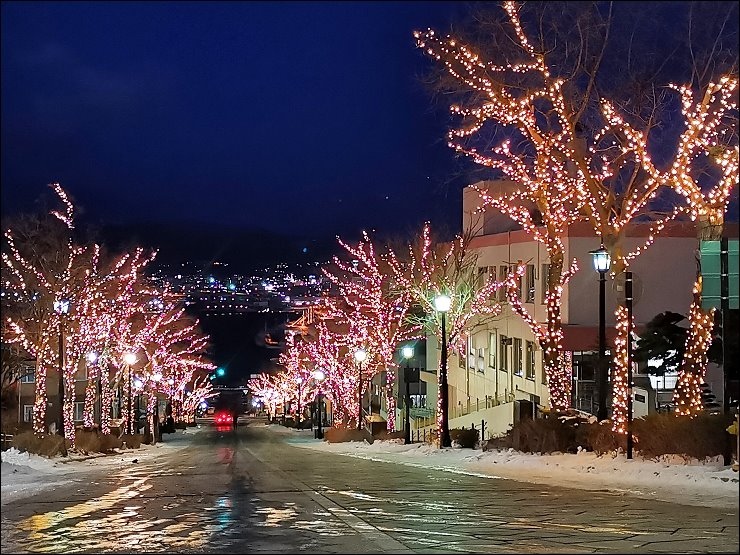 晚飯後再到八幡坂元町街頭漫步,港口有很多條直通通的上坡坂道,其中最有名的八幡坂是電視劇最愛拍攝的場景,晚上點燈也很有fu,想看大景的話,建議搭纜車上山欣賞函館的百萬夜景唷!