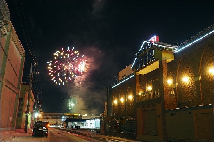 晚餐在金森倉庫附近步行約六分鐘的HAKODATE BEER,這裡有多種啤酒口味可以點,我點了蘋果口味的啤酒,也有可以豪飲的超大桶裝,點了不少餐點如:炒羊肉、香腸、炸蝦天婦羅、烤洋芋、義大利麵等大家一起享用,氣氛相當好!我們還遇到冬季限定的煙火表演,從餐廳旁的路往港邊走就可以看到美美的煙火秀,好方便!