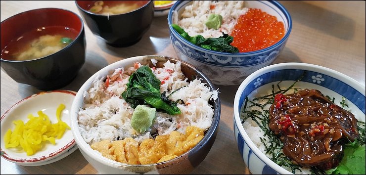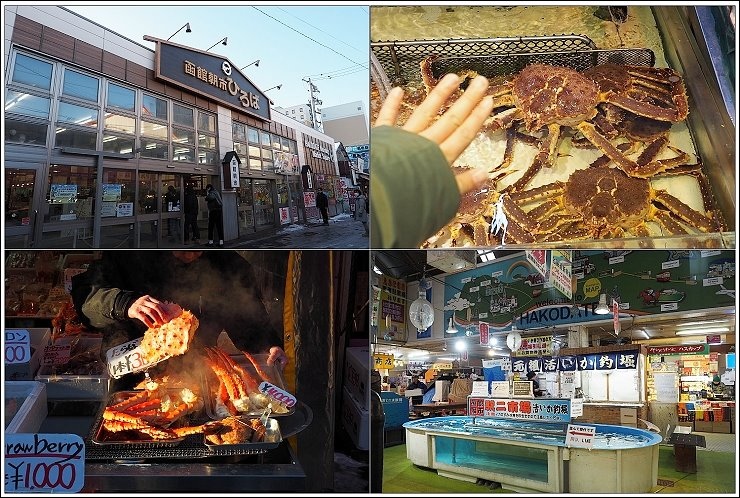 第二天早起到函館車站附近函館朝市吃早餐!函館朝市的海鮮可是出名的好吃,不用訂飯店早餐,走過來函館朝市吃早餐就對啦!有好多海產可以買唷,我很後悔沒買北海道大干貝回來...想吃的帝王蟹、扇貝等各種海鮮,都可以直接在這裡現買現吃,很特別的是現場有活釣烏賊,釣起來活跳跳的烏賊可現場料理,駅二市場的二樓可以用餐,在樓下買的生海鮮可以在二樓料理,我們則是直接點二樓的海鮮丼飯,最便宜的銅板價五百日幣就吃的到!不過若是想吃高級的海膽、蟹肉、鮭魚親子丼的話,只要一千多日幣就吃的到,很划算,不要想說早餐吃生魚片丼飯不習慣,生魚片好新鮮,這裡的白飯是熱的,吃起來好滿足!