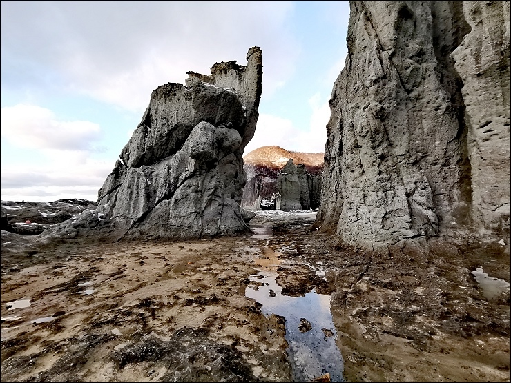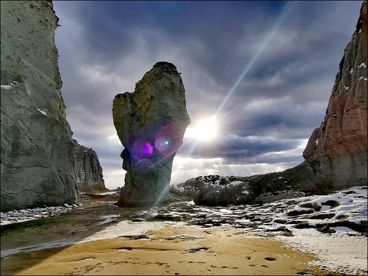 穿過樹林雪地,一路往下我們走到海邊,也就是佛浦,這裡被日本票選為秘境百選之一!這些經過風吹雨打而成的各式奇岩巨頭,都被賦予各種名稱,像是「如来の首」、「五百羅漢」、「天童岩」、「親子岩」等等,最知名的是像野柳女王頭般的佛祖頭(如来の首),親身走在這些奇石巨岩底下,每個角度都是絕美景色,令人讚嘆大自然的偉大,不禁覺得我們的渺小,超級值得專程跑這一趟!