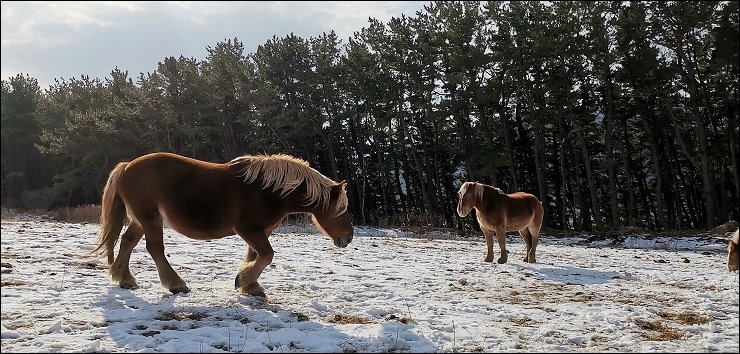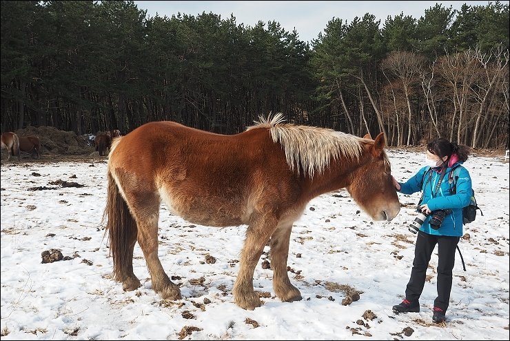第三天早上來到寒立馬冬天放牧的地方,寒立馬體型短小卻強壯結實,冬天不但寒冷還會下雪,寒立馬非常耐寒,被青森縣列為天然紀念物,以寒立馬為名的清酒也很知名。寒立馬採放牧的方式,這裡是無料免費開放,雖然大家說寒立馬個性溫和、很親人,的確我們靠近馬他們都不會怕人,不過還是要提醒大家,不可以站在馬的後方哦。