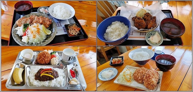 午餐來到陸奥市(むつ市)專門販賣「軍規級」海軍咖哩以及可樂餅的むつドライブイン,這附近就是大湊海軍海上自衛隊,為了讓海軍能夠有足夠的營養,特製以牛脂去油炸的可樂餅,且因海上的士兵們通常吃飯時間不多,不方便也沒太多時間可以料理,咖哩成了海軍的主食,在軍艦上,咖哩只有星期五提供,所以海軍只要吃到咖哩就知道當天是星期五。入境隨俗,我們也來吃海軍吃的飯,每種餐點份量都超級大(軍人食量大),炸雞塊每塊都很大,可樂餅吃起來也很香,在陸奧市很多家餐廳都有提供海軍咖哩跟可樂餅,但這裡是使用跟海軍相同的鐵盤且每個鐵盤都具有專屬編號。超大份量的海軍咖哩除了使用當地食材製作,重點是價格非常便宜又好吃!