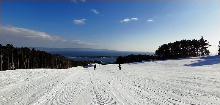 陸奧市釜臥山滑雪場(むつ市釜臥山スキー場)位在日本本州最北的城市「陸奧市」,雪場就能眺望的絕美景色而吸引不少人前來一探。從雪場內可以將陸奧灣及八甲田山脈的景色盡收眼底,向下滑雪彷彿朝著陸奧灣滑行的絕佳視野是這裡最大特色之一。天氣好的時候,從雪場就能俯瞰八甲田山脈和日本東北角尻屋崎,能夠這樣一邊滑雪一邊遠眺陸奧灣海景,只有陸奧市釜臥山滑雪場! 陸奧市釜臥山滑雪場雖然規模不大,場內共有3條雪道,有滑行距離長達5公里的越野滑雪雪道,以及佈有雪丘、最大坡度35度急陡坡滑雪道,初學者和全家大小都能安心滑雪。另外雪場整個雪季都開放夜間滑雪,可以欣賞陸奧市夜景,也是眾多人前來的理由之一!這次只有短暫體驗Snow Hike實在不夠過癮啦,下回有機會一定要安排一天在這裡練滑,白天與夜晚的雪地港邊美景都要集滿!