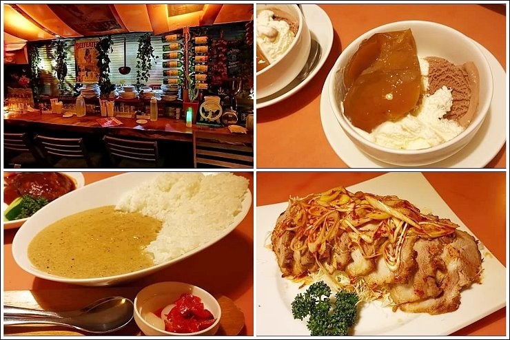 之前常跑日本,發現很多日本人他們吃晚餐會有一次會、二次會、甚至三次會,就是一直續攤的概念,一般常見的是以拉麵作為ending,而むつ市也有晚餐接著吃幾好攤的風氣,我們散步到田名部神社橫丁,這裡的夜晚一點都不寂寞,很多餐廳都還燈火通明,居酒屋、燒肉、漢堡排、串燒店、拉麵店等等,在地人最愛的漢堡排,我們當然要吃看看!我們一行人剛吃了松藻火鍋肚子其實不餓,這間店好有異國風情,店老闆也很熱情,我們又點了滿桌菜,當地必吃的漢堡排不但又大又厚,切開來還有肉汁,日本朋友配光一大碗白飯超厲害、看似平風的咖哩飯令人驚艷,咖哩醬加了黑胡椒粉相當對味,大家又是一陣吃跟喝,實在是飽到爆炸!