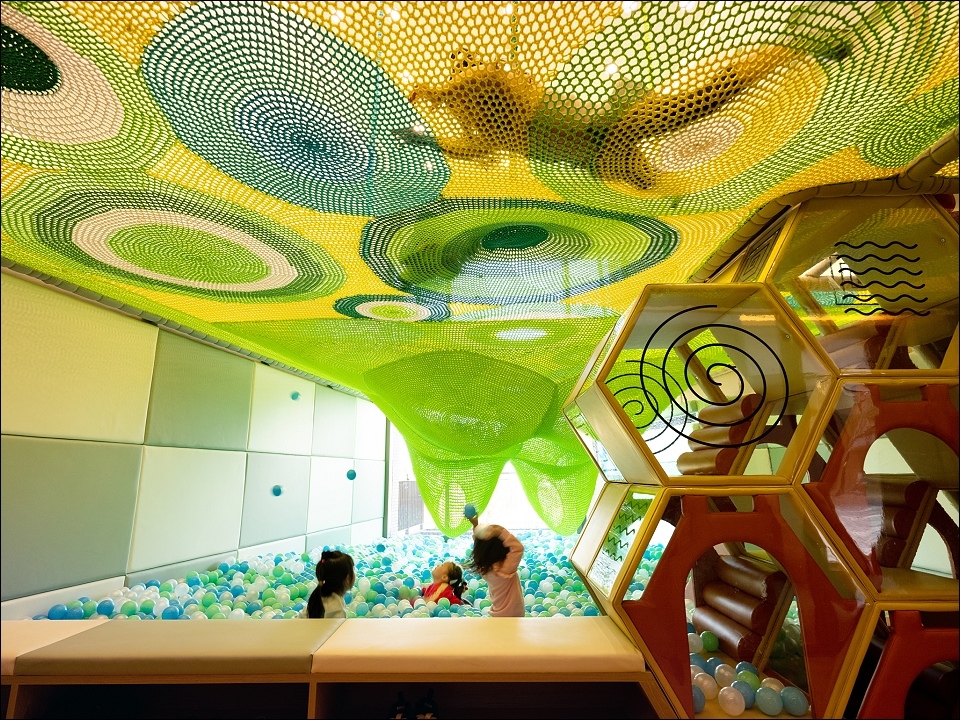室內兒童遊戲區分成好幾個區塊,室內遊樂設施比想像還要多,球池攀爬網溜滑梯根本小孩天堂,野馬妹和阿弟仔玩到不想走!