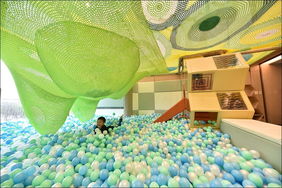 ➋暢玩兒童遊戲室、大型球池攀爬網、親子打擊室;戶外景觀SPA池、半室內溫水池、兒童戲水池。