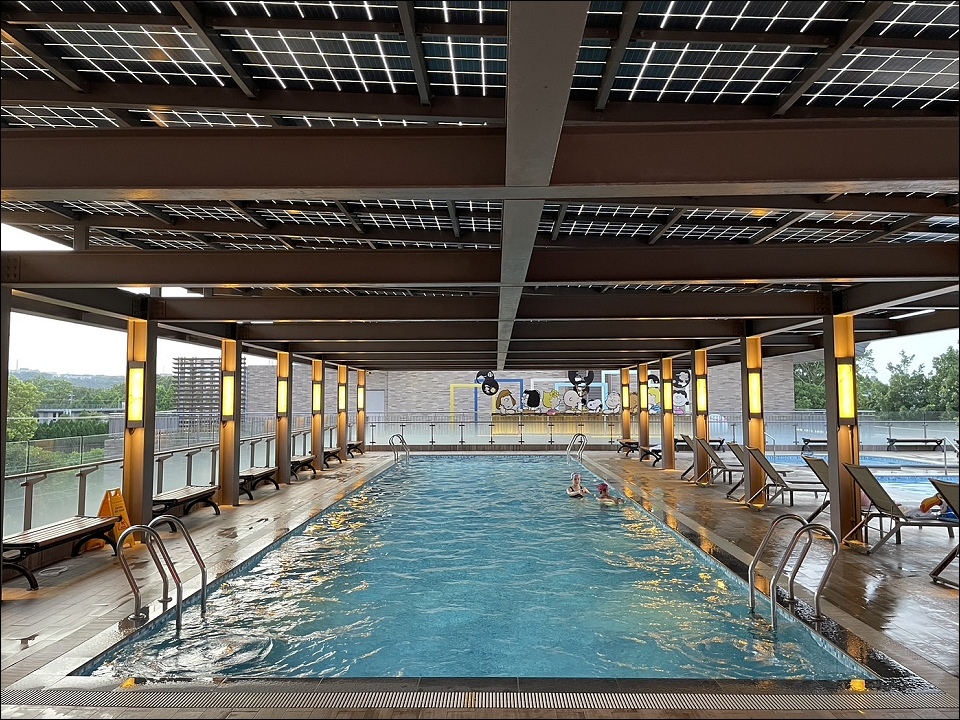 冬天玩水也OK,有溫水游泳池、景觀SPA及三溫暖,飯店設施還有健身房可以讓爸爸流汗放鬆。