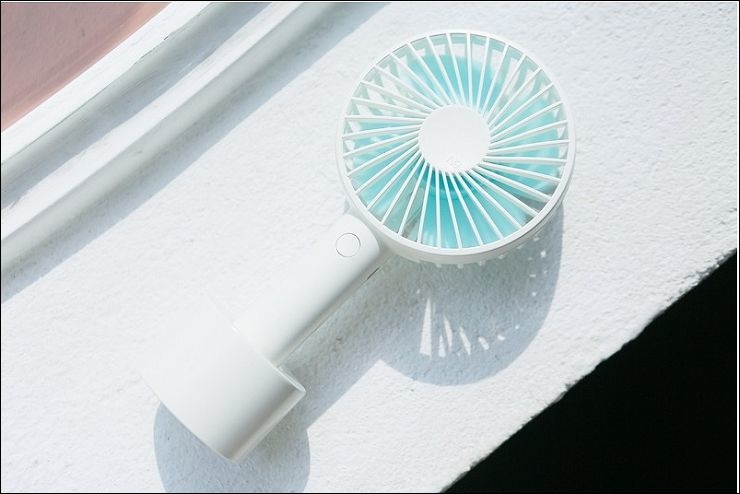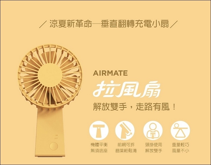 這家艾美特除了手持還有出夾式小風扇,體型比較矮胖,可以直接坐穩坐好,可夾在0.5~2.8CM之間的厚度。