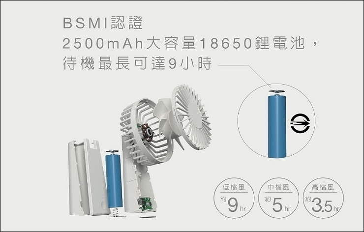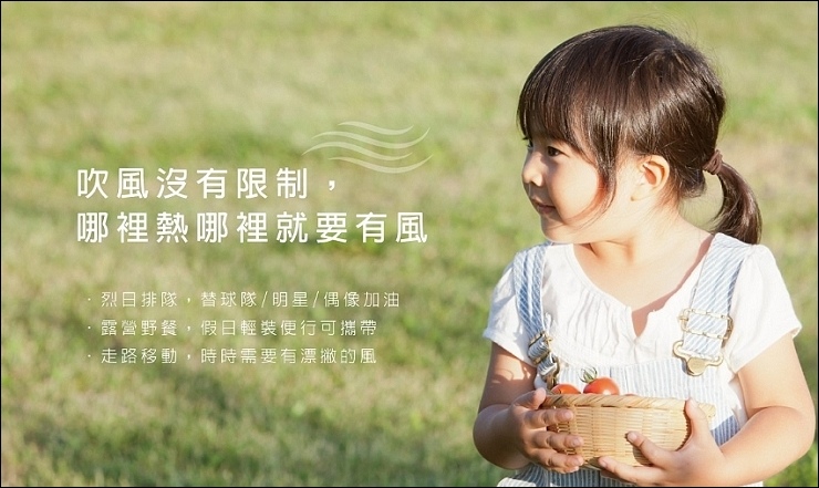 這款也很適合帶去露營,隨便夾都合用!高檔風可以撐2小時、低檔風約6小時,搭配吹出的自然風,讓露營生活更加舒服~~