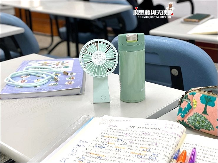 社長持續上日文課已經一年半了,每次進教室我都全臉是汗,還要戴口罩更是痛苦,好在最近有了這台小風扇‼️最弱風沒什麼聲音不會影響上課,趕快開起來涼,然後老師常常延後下課,學校管控時間一到就切冷氣,還好今天有它支援,不然我又要滿頭汗下課了,可手持可站立還可吊掛,3way真的好方便。