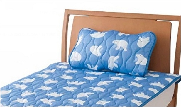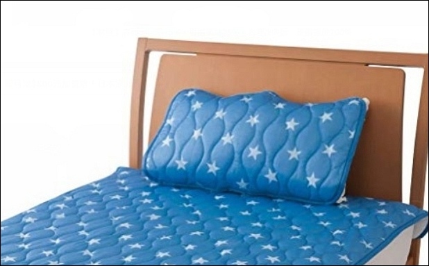 日本涼感枕墊,使用涼爽的材質製成,背後使用鬆緊帶,很容易地加在家中枕頭中,使用混有特殊冷礦石的纖維,給人一種清涼的感覺。
