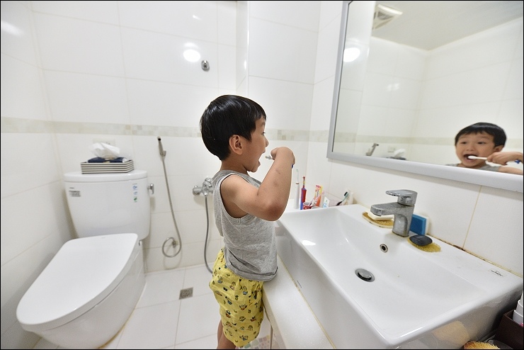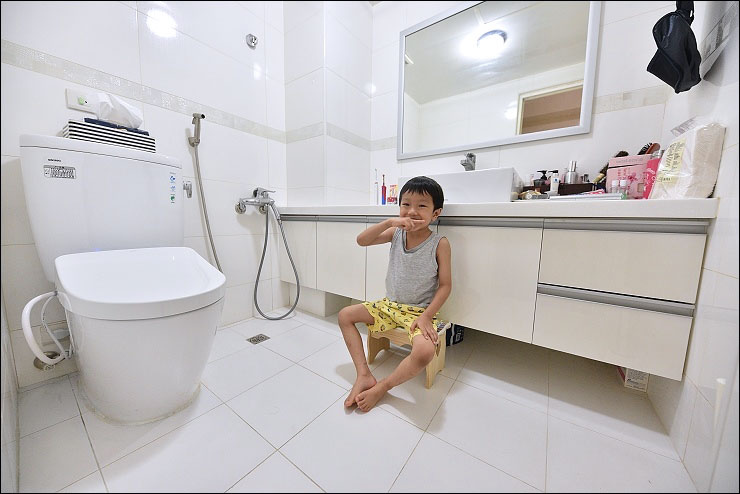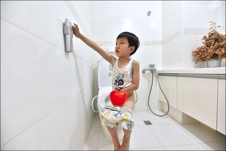 馬桶及便座的清潔不要忽略哦,尤其小弟很容易亂噴,上完廁所除了要洗手,我會要求他隨手把便座掀起來擦乾淨,有時會有幾滴黃黃的,他會甘願把自己弄髒的地方擦乾淨,從小養成好習慣,這樣以後他老婆會很幸福,保持馬桶及便座的清潔很重要唷!