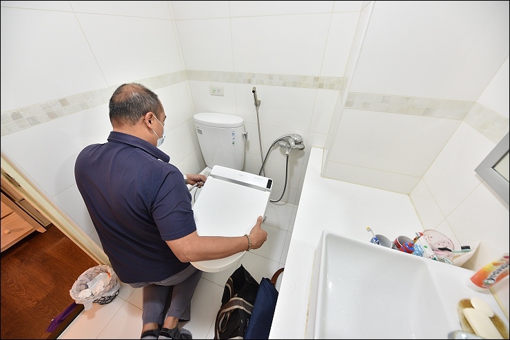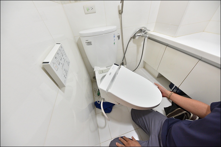 因為家裡原本是TOTO型號SR(TCF6531T)的溫水洗淨便座,現在要來升級有除菌水功能的溫水洗淨便座,安裝超簡單,只要鎖幾顆螺絲把底座裝好,再把新便座換上去就完成!TOTO的安裝師傅非常專業又細心,不但快速安裝完成,拆換時事先放衛生紙在底座那邊,拆舊機時若後方有殘水,衛生紙直接擦拭乾淨,不會弄濕其他地方,安裝完成也有示範遙控器操作潔淨模式及噴嘴清潔,另外,我家馬桶裡有一圈黃漬,我一直以為是尿垢很難清掉,經師傳說明才知,原來是水垢,用些漂白水清潔,果然還我一個亮晶晶的馬桶~