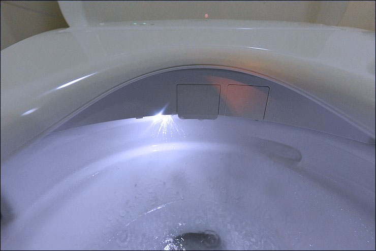 升級TOTO WASHLET溫水洗淨便座(型號TCF4931T)之後,弟弟發現只要一踏進廁所,馬桶就會亮燈開始噴水,半夜起來上廁所特別有感覺,馬桶在黑暗中成為一盞明燈好方便!一靠近就有前噴霧功能,在馬桶使用前,就自動噴出自來水霧,主要是讓馬桶表面濕潤,像是一道無形的防污守備,讓髒東西還來不及沾黏就可以輕鬆沖走,之前那款便座是要坐下來才會有前噴霧,進階款反應時間更快速。使用一段時間馬桶的黃垢沒有那麼多,清潔更容易。