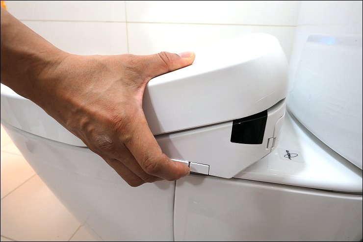 TOTO WASHLET溫水洗淨便座除了安裝容易,拆卸也很方便,只要按住「單體拆除」按鈕,可以把便座移出,用抹布或紙巾沾水擦拭,後方不容易清潔到的地方,都可以輕鬆清潔到,千萬別忽略這些隱藏的角落,想到就順手擦一下,廁所也不容易有尿騷味,廁所保持乾淨,在家上廁所舒服又享受!