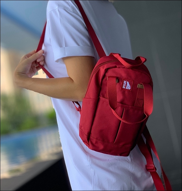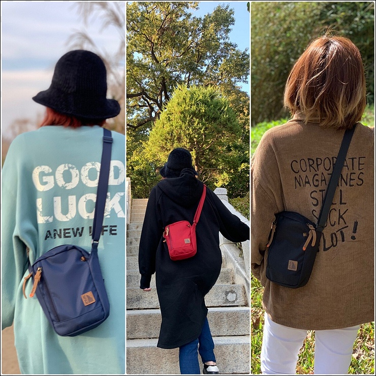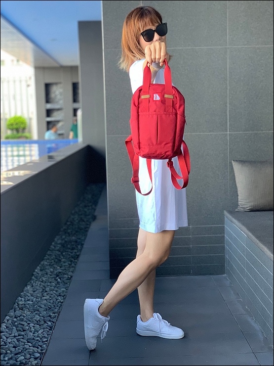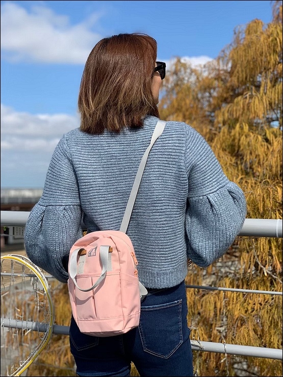 而且他是3way,手提、雙肩背、斜背都可以,功能多樣,小歸小,瓶裝水也裝得下,又文青時尚好看!