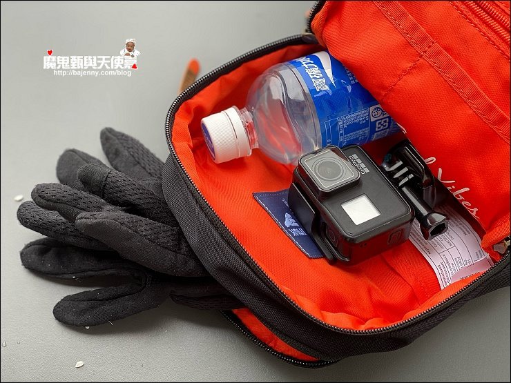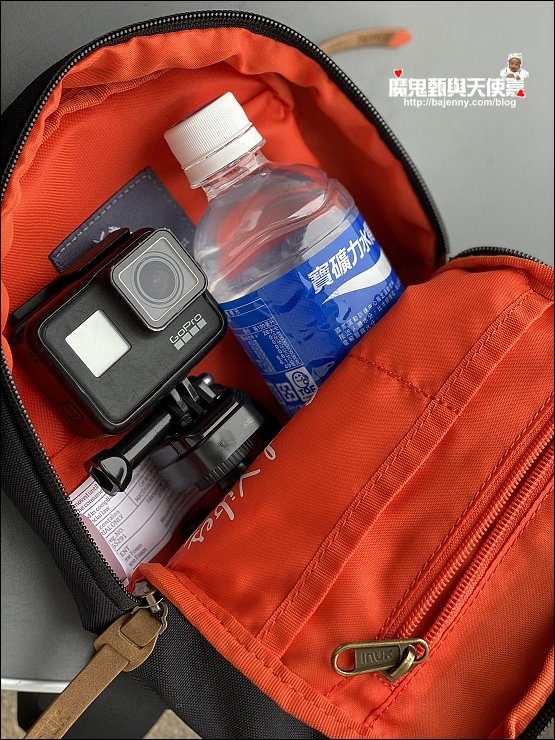 這咖胸包不要看他小小一咖,也很能裝欸,瓶身水的大小也沒問題,而且小分隔也做的不少,隊長出門旅遊gopro不離身,因為要幫大家留下美好的旅遊回憶。
