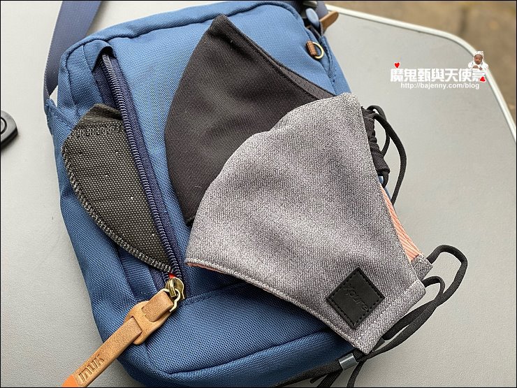 夫人背的小藍包,現在我天天背著裝手機、口罩、錢包那些,基本上就是我的隨身包。