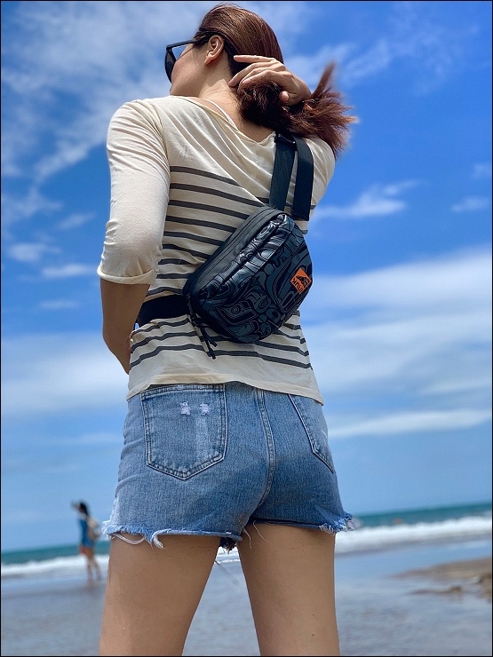 另一款小腰包,不過現在不流行繫在腰間,都是掛在肩上或斜背當胸包居多,然後甩到後面才酷,不要小看它,長夾跟瓶裝水都ok。