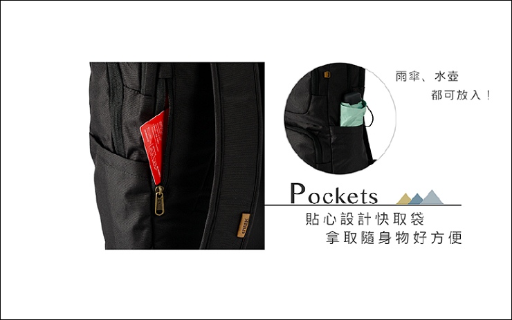 背部的快取袋是他們家背包的特色,幾乎每個都有設計,我已經超習慣它了,捷運票卡都放在這裡,進站時手從後面一取就拿到!!超級方便!!