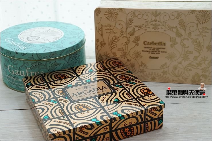 本團中秋送禮團有三款是附鐵盒的,就這三組:上野風月堂大法蘭酥、Corbeille牛奶白巧克力捲及ARCADIA4格餅乾,三款鐵盒風格各異,想要鐵盒的人記得不要選錯喔。