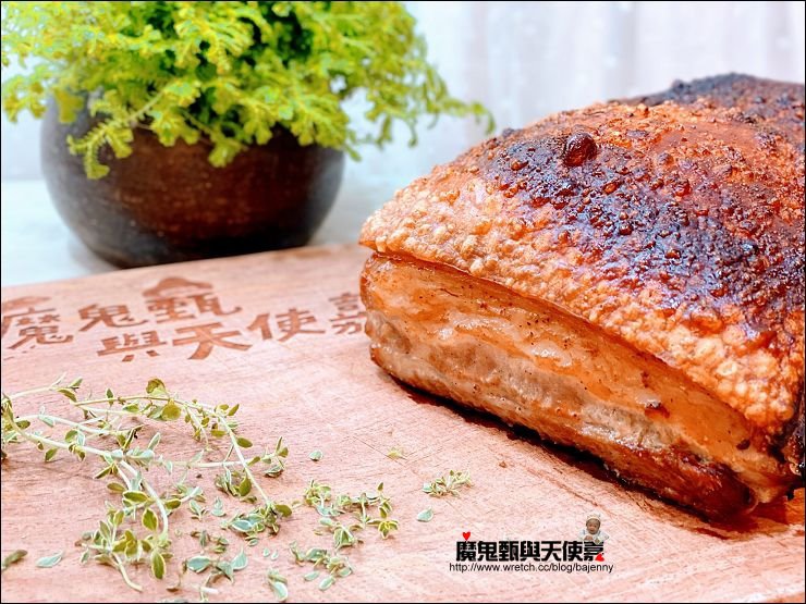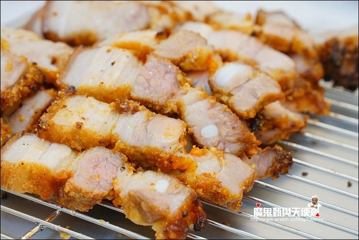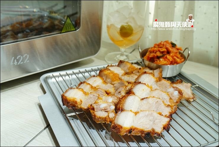 以前每次在燒臘店最喜歡點脆皮燒肉,第一次嘗試氣炸,豬皮竟然能炸到這麼酥脆,要歸功於422新款有強大230度的火力,好友說烤成這樣的金黃色,是要逼死燒臘店嗎?
