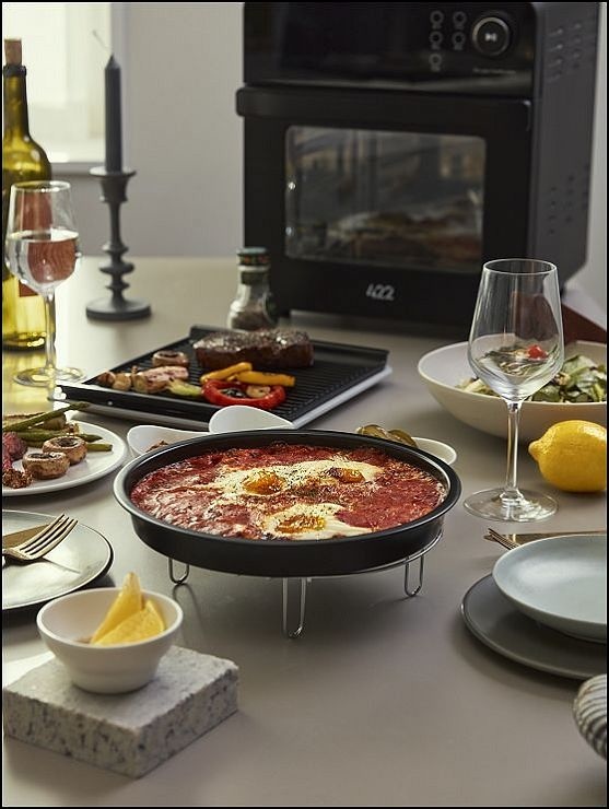 422 20L氣炸烤箱下單送:韓國製陶瓷不沾烤盤附隔熱套市價1980元,若贈品贈完以等值商品替代。