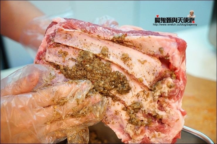 4.肉的兩面,捲勻的抹上醬汁,放入冰箱冷藏(隔天再拿出來兩面繼續按摩一下);
