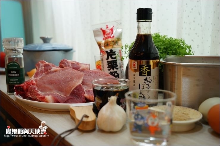 醃料:醬油、柚子醋、蒜頭、薑片、白胡椒、片栗粉,鹽