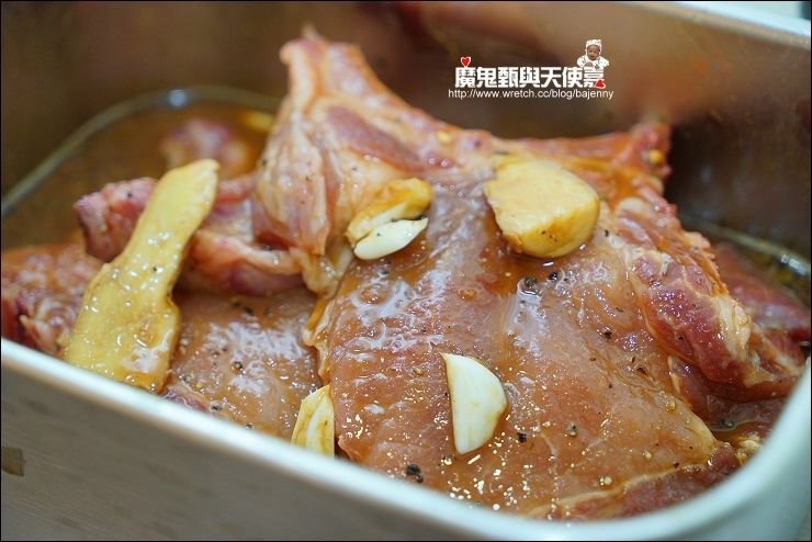醃料:馬告、黑胡椒粉、蒜泥、糖、橄欖油
