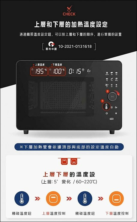 ☑業界首創上下加熱管獨立調溫,烘焙愛好者必備功能,避免上熱下溫,食材溫度更易掌握。