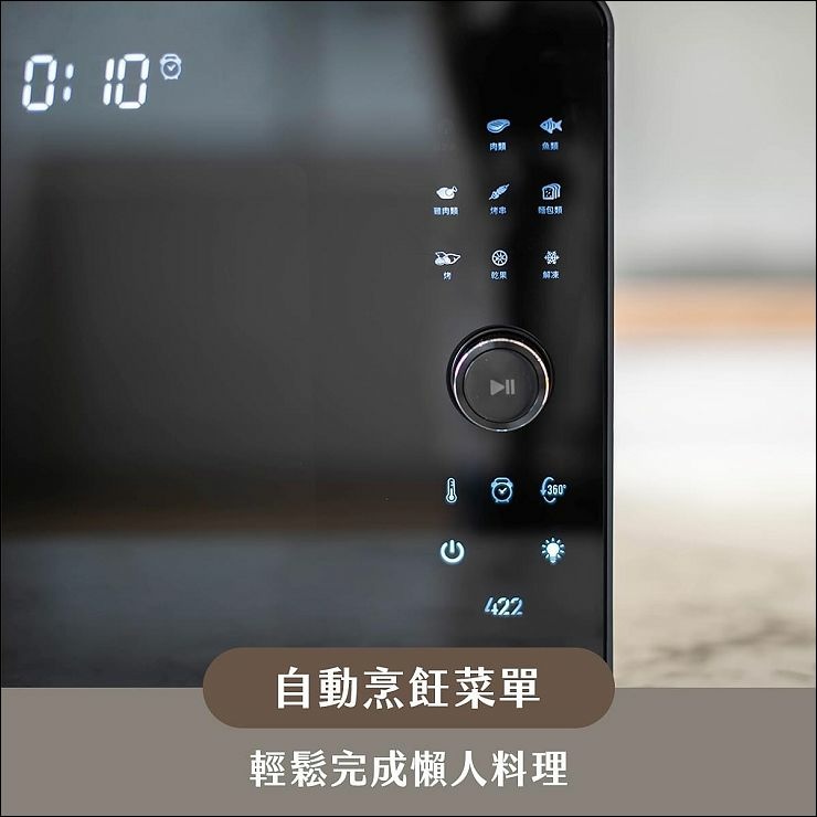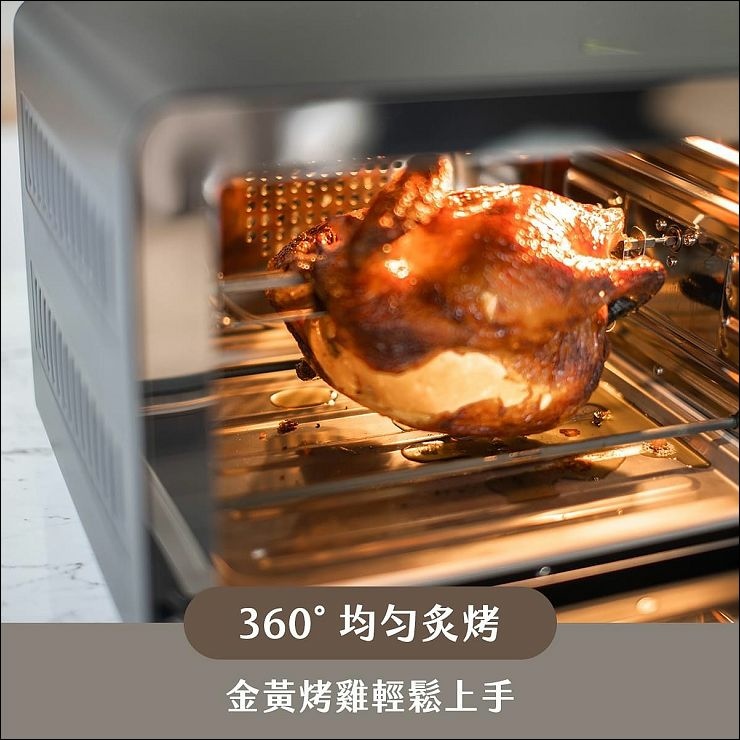 可容納一隻全雞進行360°炙烤,9種預設自動烹飪菜單,一鍵變大廚,省時省力,廚藝大躍進~