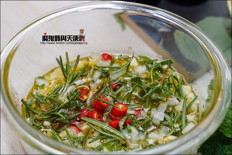 5. 將檸檬皮、蒜頭、辣椒、迷迭香、薄荷葉、洋蔥切末