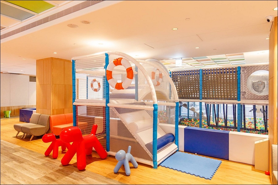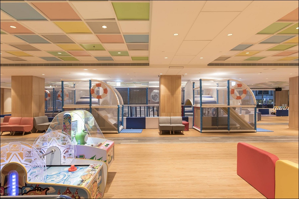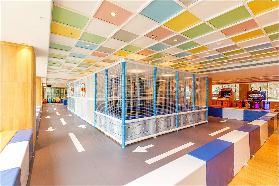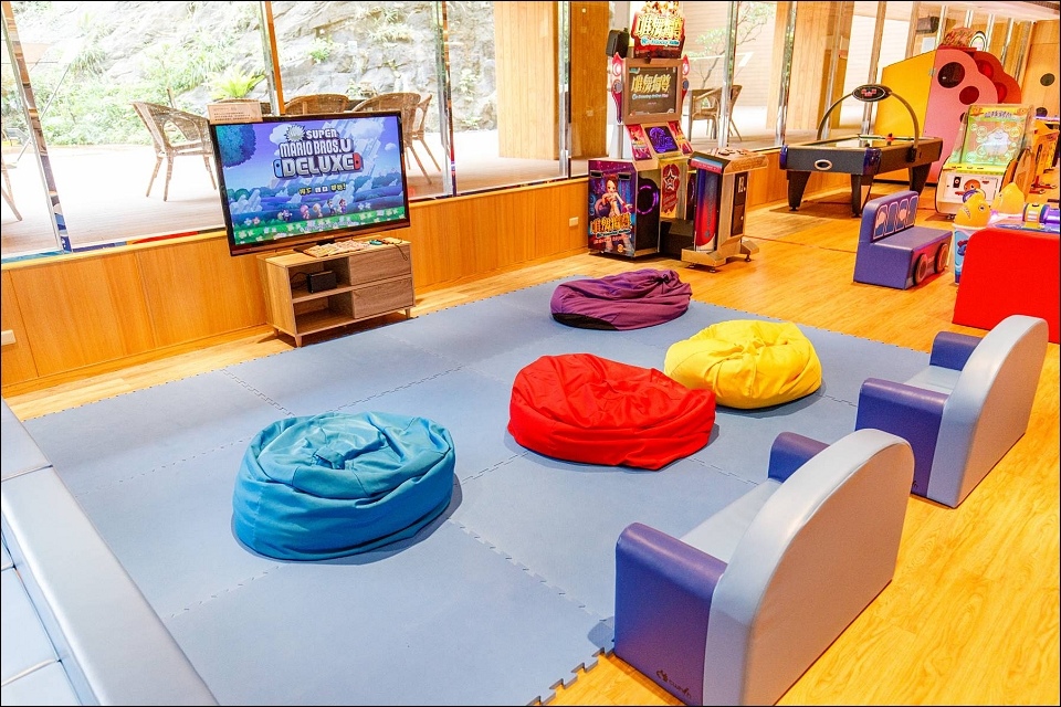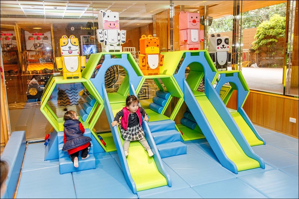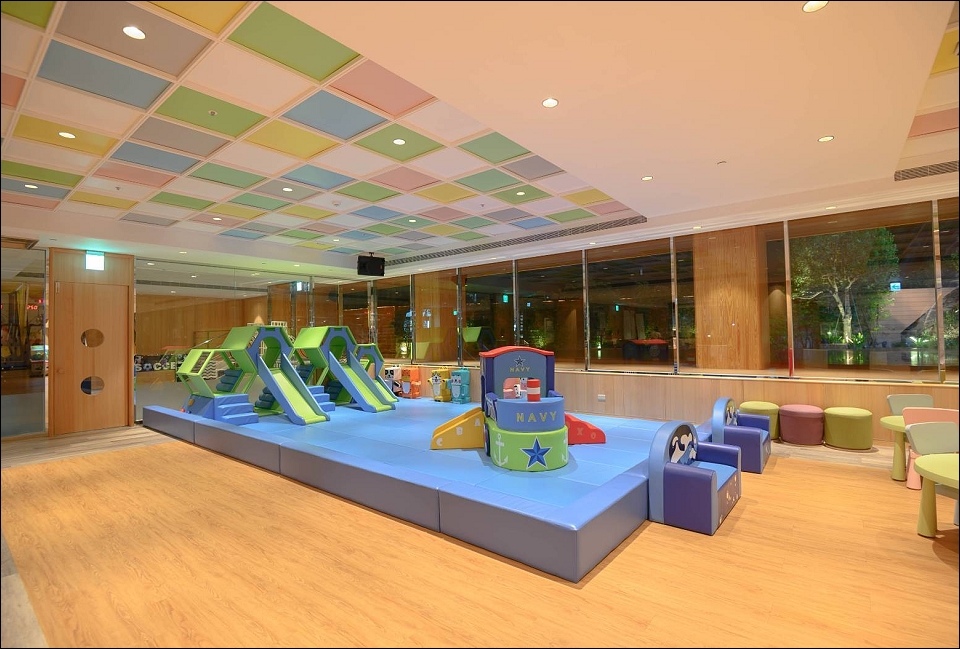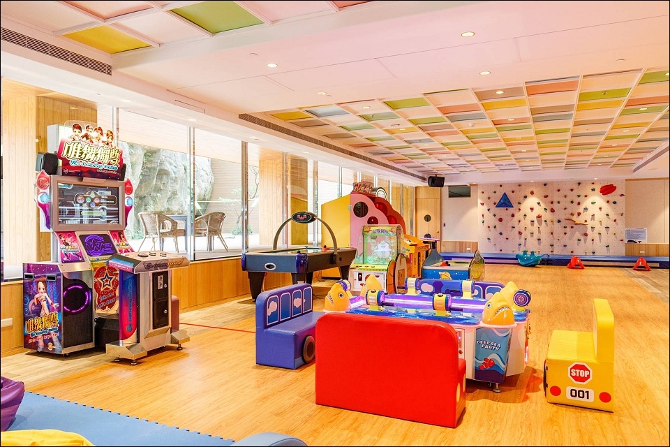 室內休閒設施有兒童遊戲區 | 兒童攀岩 | 親子玩樂屋(棒球屋) | 健身房 | 桌球/撞球 | 電動遊戲區 | Kid's DIY | Mini-Disco | 珊瑚姐姐說故事