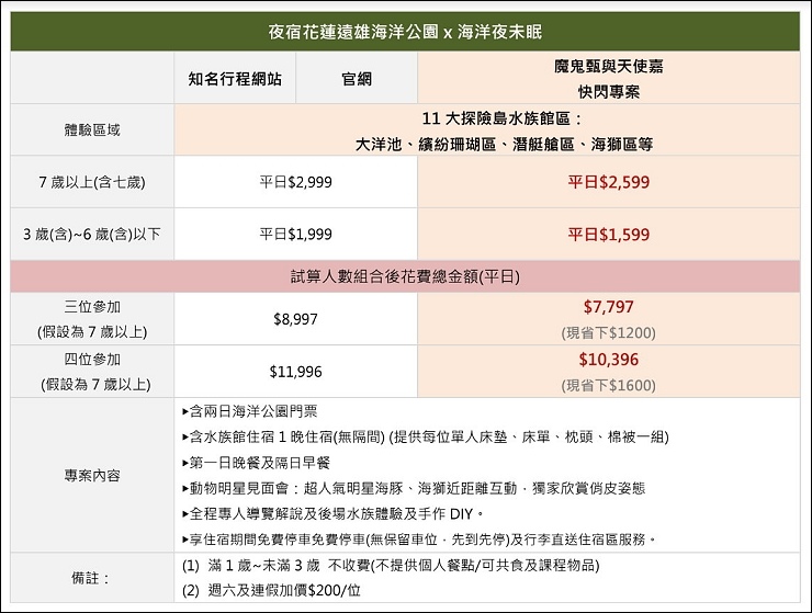 ✨夜宿花蓮海洋公園一泊二食外加二日樂園門票直接線上訂