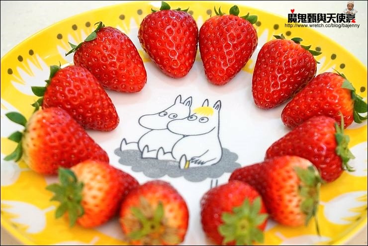 唯一的大圓盤裝草莓時,露出中間那兩隻~超。級。可。愛~~的啦,帶整顆波斯頓派出去野餐時,這個淺圓盤邊緣沒做那麼高,移動餐點較為方便。