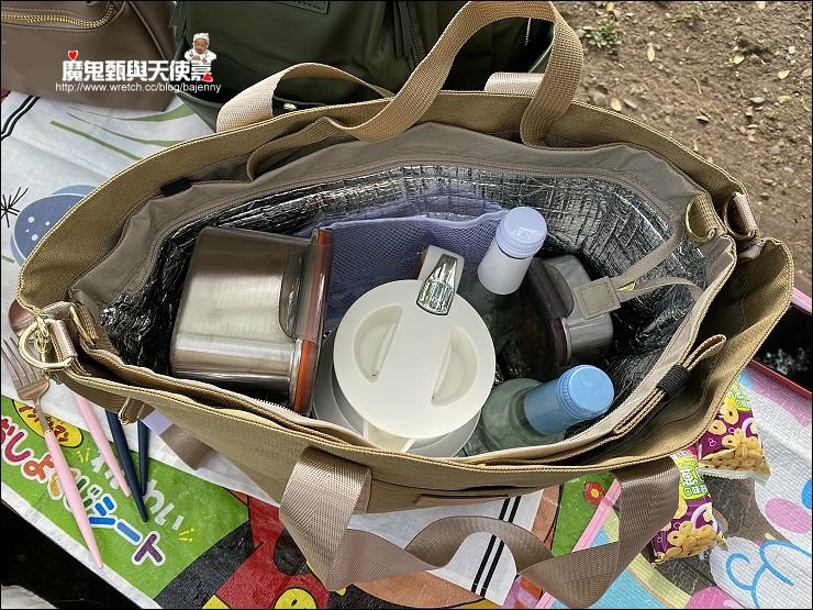 出去野餐時就要把內袋一併套入,可以裝冷飲、水果、蛋糕等要保冰的食物,既方便又好看!