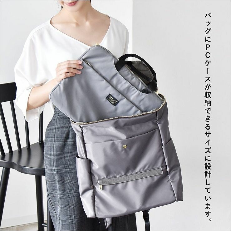 最後這款是社長自留款:光澤感防潑水後背包+電腦袋,素面光澤感後背包質感加分,後背包除有分隔收納袋外,還附有專用電腦收納袋。