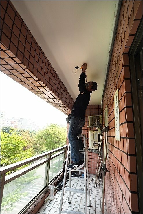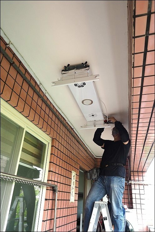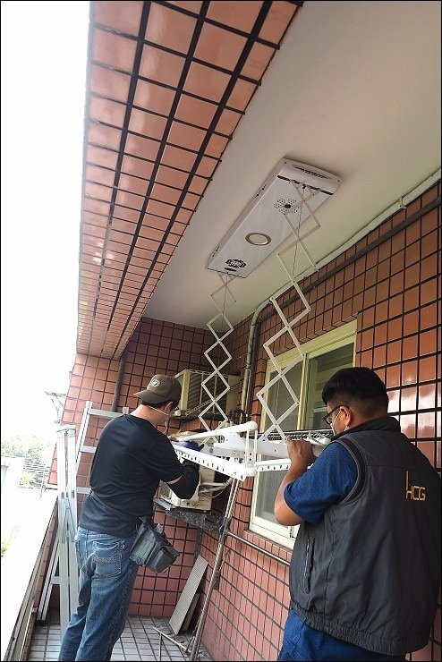 我選訂的「HCG和成電動曬衣機豪華四桿款」,長寬高是133x20x7.5公分(建議安裝空間是95x160公分以上)。約好安裝時間,安裝師傅準時到達,進行安裝作業,拆除原有的照明燈及牆上二根沒在用的傳統曬衣架。