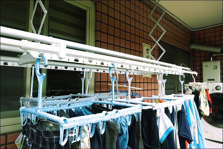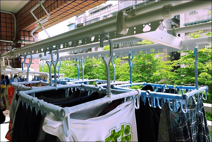 之前每次洗衣曬衣我都像在打仗,早場先在後陽台曬,午場再搬到太陽曬的到的前陽台,要是遇到天氣不好下雨天,還得全都再搬到室內掛個二三天才會乾...超級麻煩。