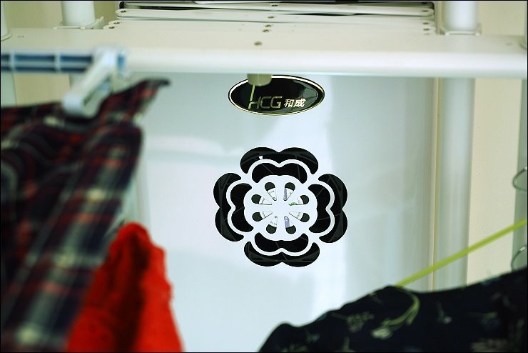 大風量風扇, 增加空氣流動,加速衣服快乾,減少衣服陰乾的味道!我習慣曬好衣服就開一次,啟動後兩個小時自動關閉。風扇運轉的聲音不大,機器本身採用「DC直流靜音馬達」,比起一般使用的交流電機馬達,更安靜,性能也更穩定。