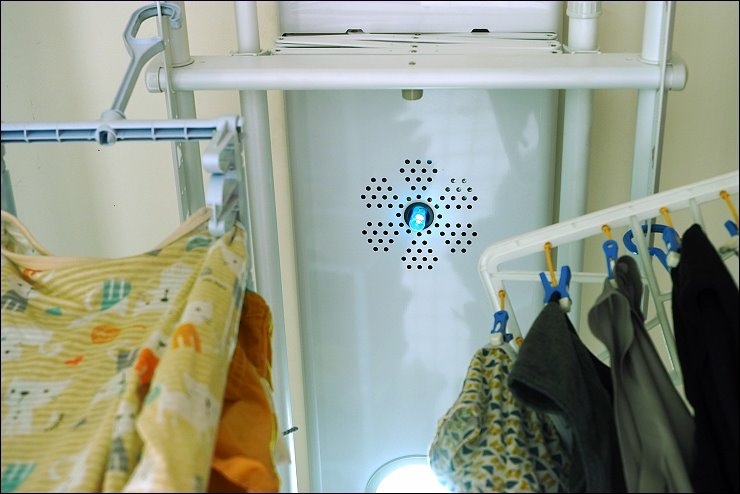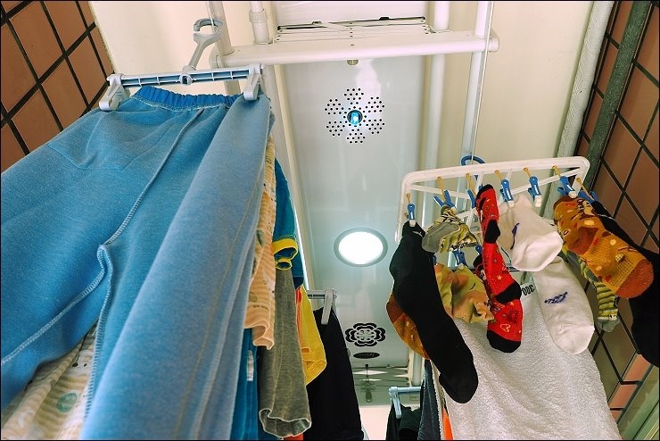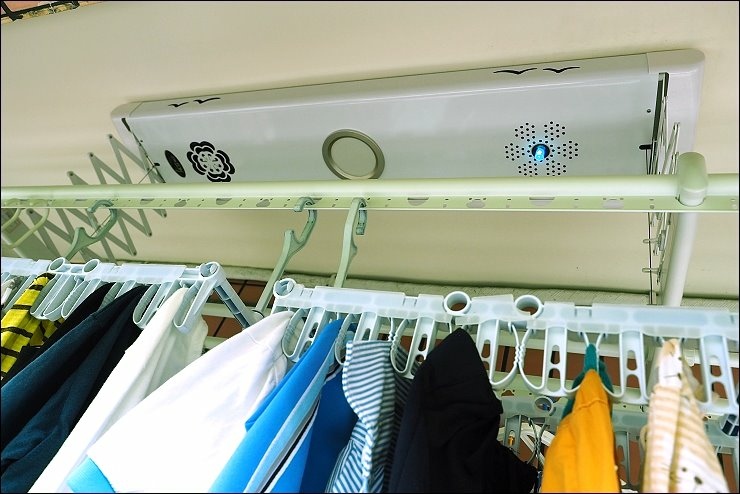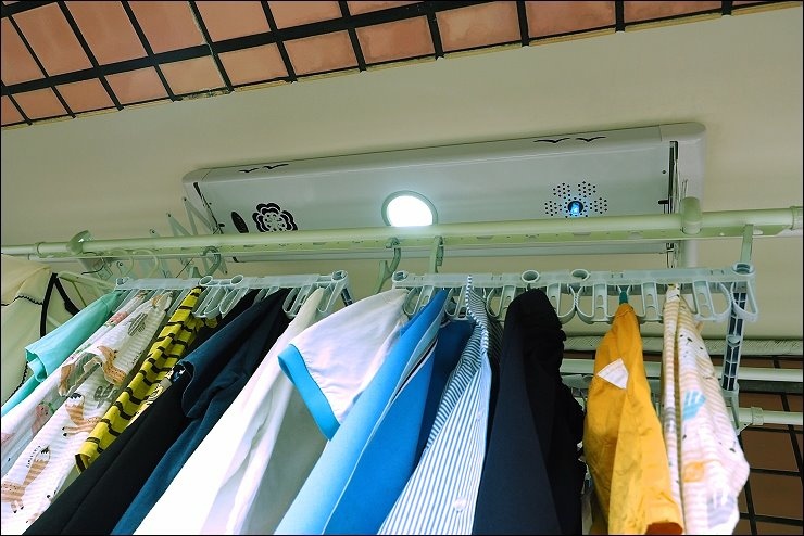 使用了一個多月,我已習慣在大風扇區曬衣服跟毛巾加速通風與乾燥,紫外線殺菌燈這邊曬弟弟的衣服、全家的貼身衣物及襪子,晾曬時同步殺菌,依照需求分區曬衣好方便。