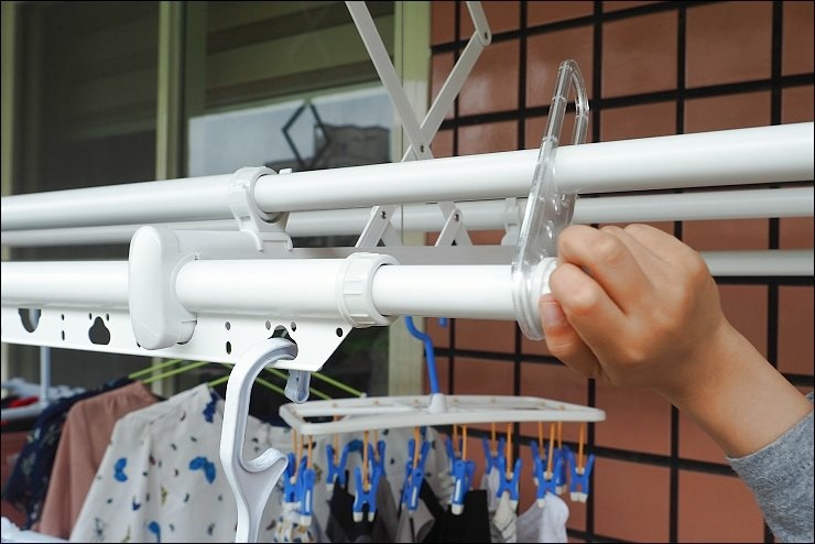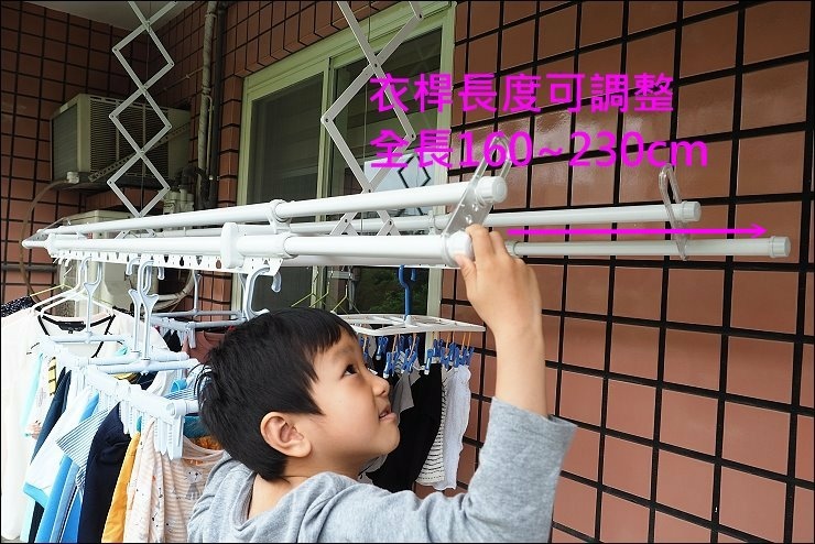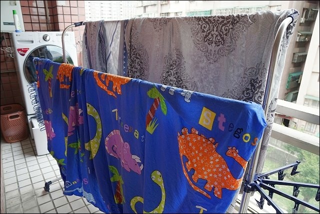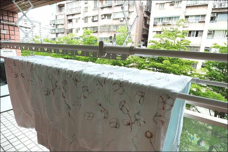 曬衣桿超實用,尤其在曬被子跟棉被時超實用,全長160~240公分,可以完全攤平大棉被,很快就可以曬乾,每次週末好天氣早上洗好曬,下午就可以收進來了,晚上小阿弟睡覺蓋被會說:哇~有陽光的味道,好舒服!