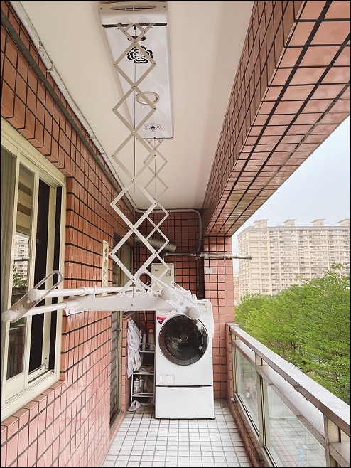 我更愛電動曬衣機可以升到天花板,陽台的使用空間變大了,不像以前二大個曬衣架都佔滿沒地方走路。陽台空間都出來了,滿足我想種植綠色植栽的心願,洗衣曬衣變成一種生活樂趣,讓我從怨婦變貴婦!