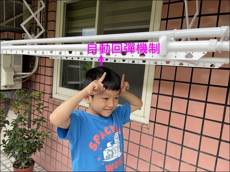 HCG電動曬衣機有遇阻回彈的設計,它放下來的時候若碰到人,它會自動向上輕彈3-5公分,我很放心叫小阿弟來幫我曬衣服。