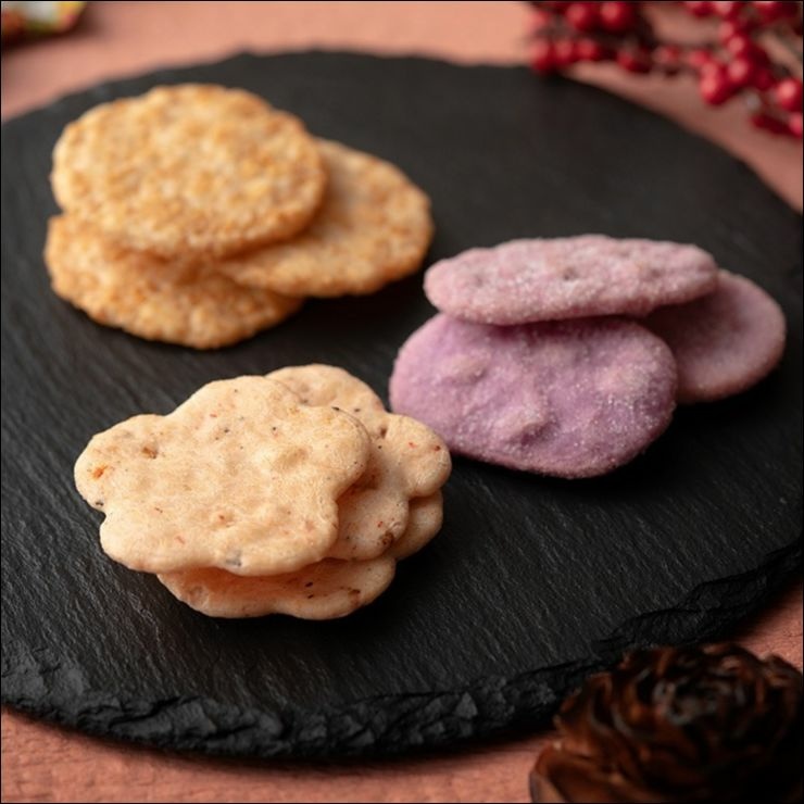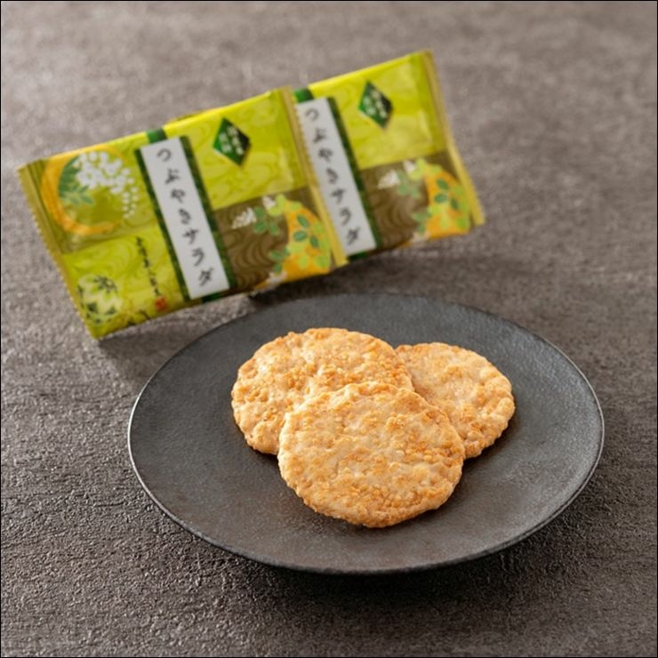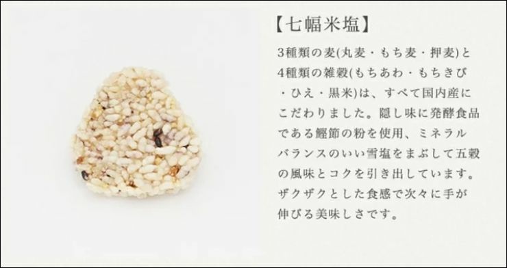使用3種小麥和4種小米,只使用日本當地材料製成美味米餅,撒上礦物質平衡良好的雪鹽,充分發揮小米的風味和濃郁感。口感鬆脆清淡美味。