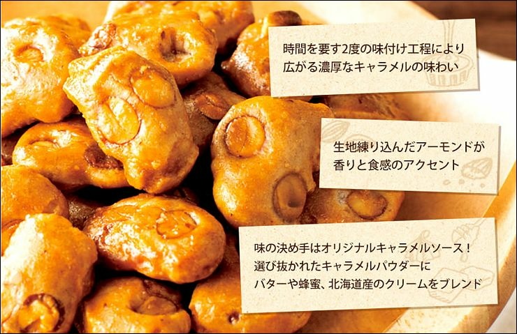 日本絕品焦糖杏仁禮盒組,濃郁的焦糖x加州杏仁x 蜂蜜,經過二次烘烤,製成酥脆口感的米菓。